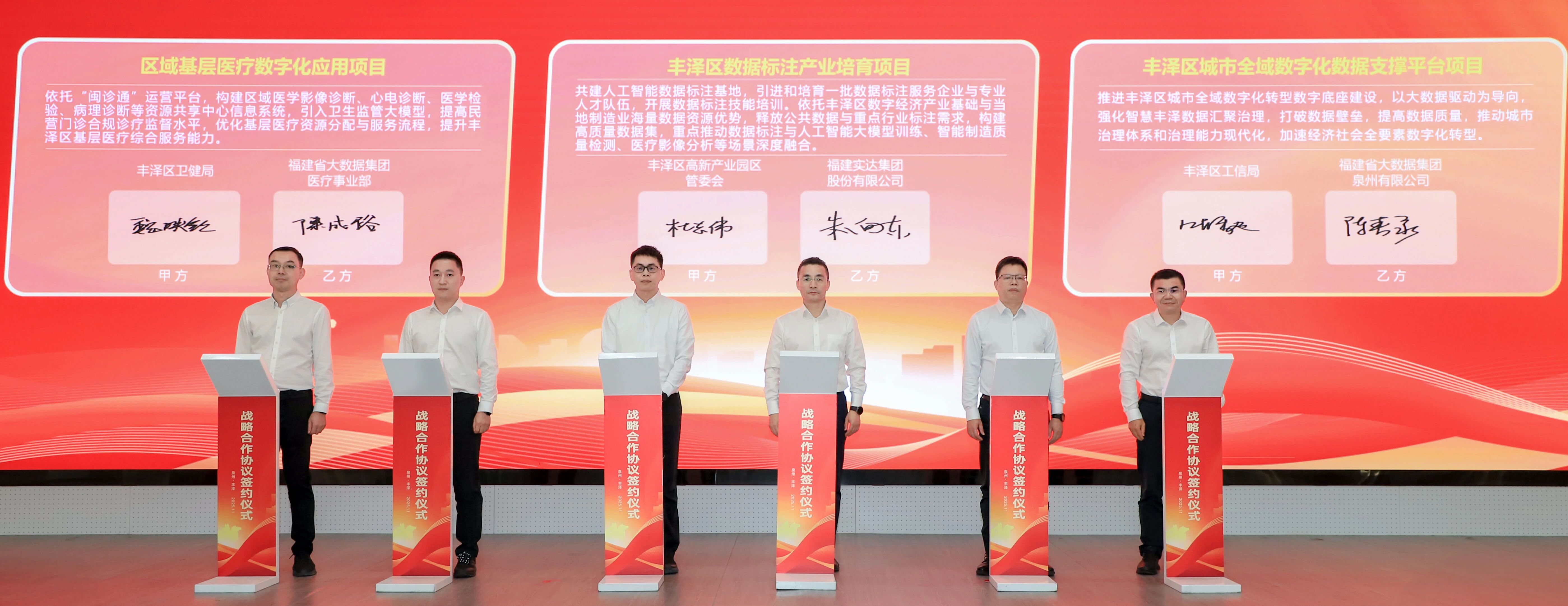 为推动战略合作落地见效,丰泽区人民政府与福建省大数据集团有限公司将率先在区域基层医疗数字化应用项目、丰泽区数据标注产业培育项目、丰泽区城市全域数字化数据支撑平台等三个重点项目上深化合作。项目的落地将有效提升丰泽区数据汇聚治理能力,打破数据壁垒,构建高质量数据集,赋能数字化应用场景,加快推进丰泽区经济社会全要素数字化转型。