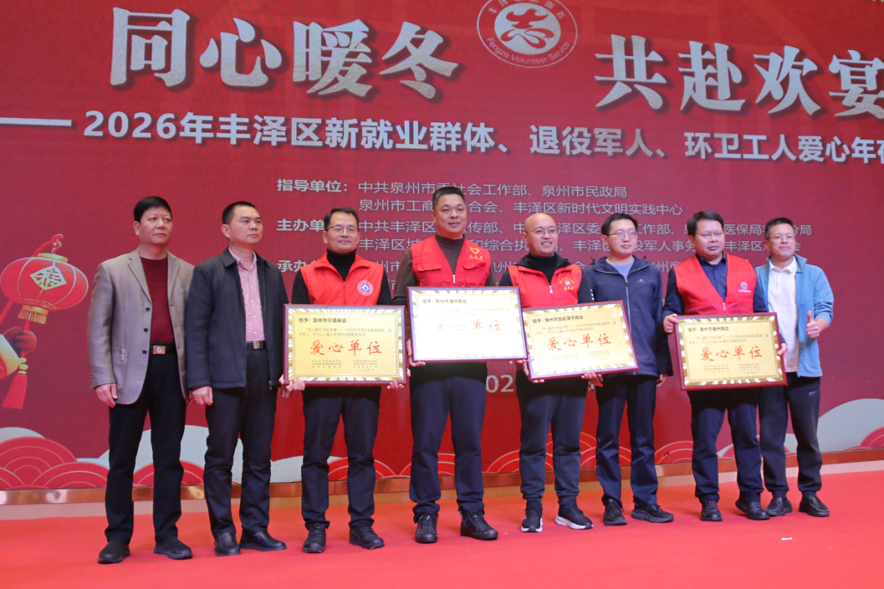 为感谢默默奉献的环卫工人、保家卫国的退役军人以及为城市发展辛勤付出的新就业群体,增强他们的归属感和幸福感,促进社会和谐共融,弘扬志愿服务精神,近日,“同心暖冬·共赴欢宴”——2026年丰泽区新就业群体、退役军人、环卫工人爱心年夜饭活动举办。