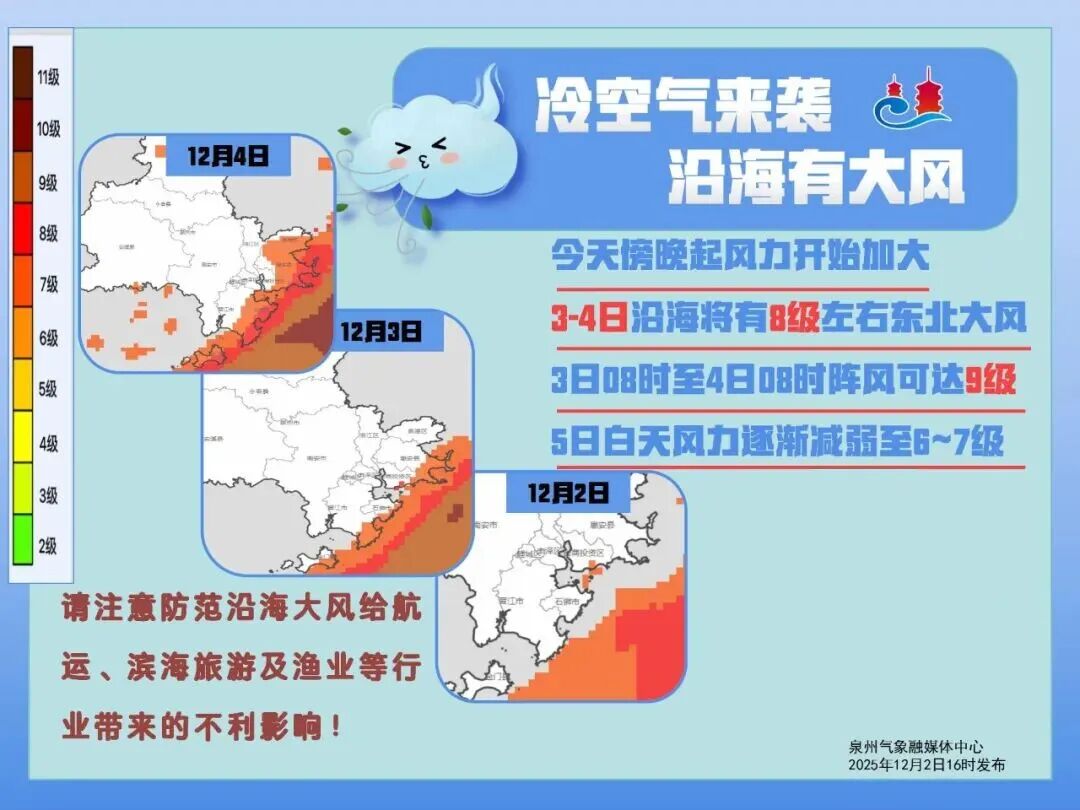 今起影响!最低仅7℃!有8~9级阵风(12月3日--5日)