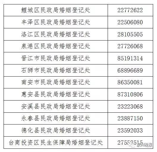 从泉州市民政局获悉,为进一步做好泉州市新型冠状病毒感染的肺炎疫情防控工作,有效减少人员聚集,阻断疫情传播,保障人民群众生命安全和身体健康,根据省、市有关疫情防控工作的通知精神,即日起,暂停全市婚姻登记办理工作。市民朋友可于工作日拨打户籍所在地婚姻登记处电话咨询,具体办理时间视疫情防控情况另行通知。在此期间,如遇特殊紧急事由,确需紧急申请办理的,请致电咨询并预约,各婚姻登记处酌情予以个案处理。疫情防控,人人有责,望广大市民朋友给予理解和支持。(来源泉州网,吴志明 李肇兴)