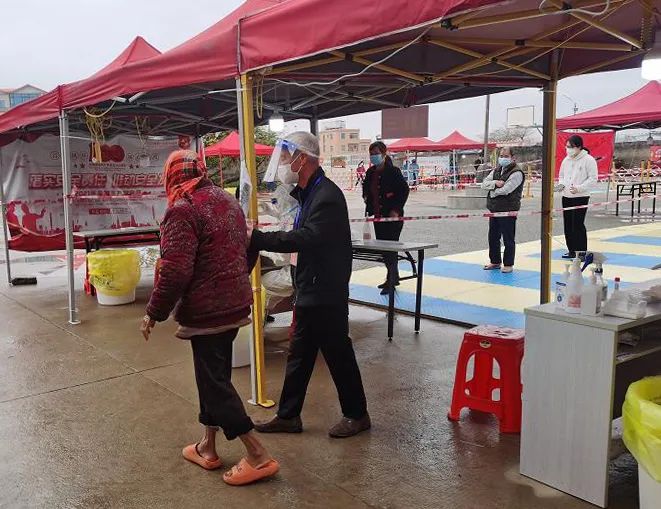 “大家不要急,不要挤,保持距离,很快就能轮到。”这是老协志愿者在核酸检测采样现场维持秩序。“老董啊,这个很简单的,我都会,我来教你。”这是老协志愿者随同网格员入户教其他老人使用抗原试剂检测。“这边我来打扫就行,你们去忙别的。”这是老协志愿者协助完成核酸检测采样现场清扫消毒工作……最近,在城东街道金屿社区,你总是能看到一群可爱的银发老人忙碌在抗疫前线,他们就是社区的老协志愿者。疫情发生后,为了团结一切可团结的力量,金屿社区群团负责人董永志迅速与老协会长董乌目碰面,组织起老协防疫志愿队。老协成员纷纷积极响应,在简单的培训后,迅速参与到防疫工作的各个环节中。