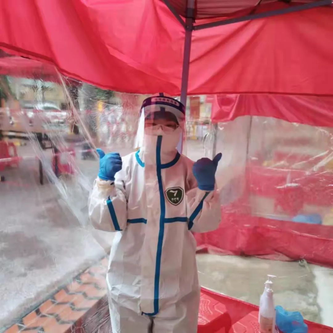 陈熙瑶是一位可爱的“00后”女孩,来自泉秀街道泉淮社区,是一名刚刚踏入社会的“实习护士”。疫情突发后,当看到社区招募志愿者,她下定决心参加。家人起初都觉得她年龄太小,持反对意见,她就和妈妈商量说先去体验下,妈妈才勉强同意。战“疫”第一天,她把战“疫”照片发给妈妈,以为会得到妈妈的夸奖,然而妈妈却担心地询问她是否按时吃饭、有没有做好防护等等。后来,她干脆瞒着家人继续坚守“疫”线,并通过给父母做思想工作,最终成功地说服了父母。疫情以来,陈熙瑶不畏艰险,冲锋向前,从核酸检测现场、小区出入口体温测量,到入户发放通行证、新冠抗原检测试剂盒,再到值守重要路口、封控区入户发放抗原检测试剂盒等,她都能出色地完成任务。雨天路口值守的她,穿着雨衣认真查看居民通行证,被冻得瑟瑟发抖,雨水遮挡了视线,也浸湿了鞋袜,回到家发现脚底都泡白了,却还在想着恶劣天气值夜班战友的安危。第一次去封控区的她,会为了从“小蓝”摇身变成“大白”激动不已,但也切实体会到“大白”的不容易。为了不浪费防护服,她就禁食禁水,一坚持就是三、四个小时。总有人问她:“你才18岁,为什么要冒这个险?”她坚定地说:“以前我们是被保护的一代,现在‘00后’长大了,轮到我们来保护你们!”