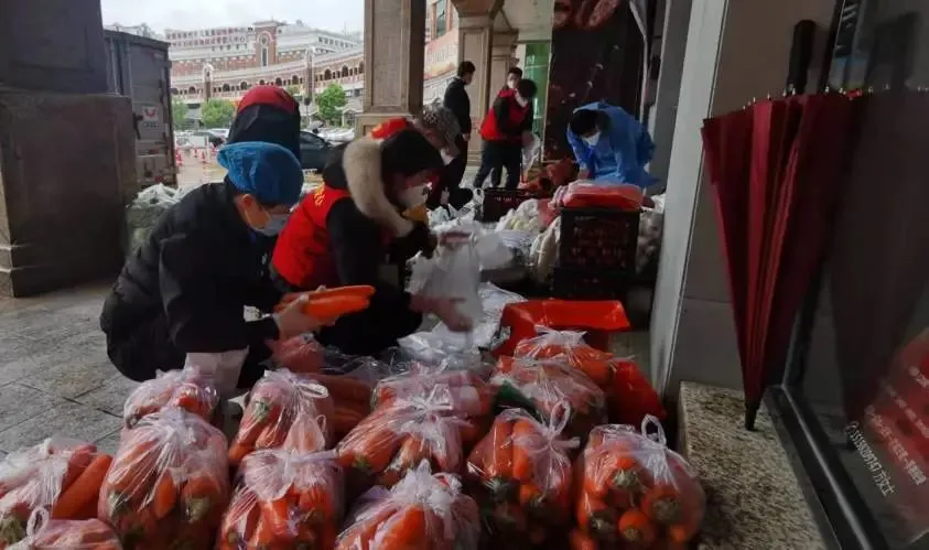 包菜、生菜、西红柿、胡萝卜……近日,2000斤新鲜蔬菜被分装成250份,由泉州市东南公益协会的10多名志愿者送到丰泽街道东美社区封控区域的居民手上。东美社区是本轮疫情爆发以来,最早封控的社区之一,居民拿到免费的新鲜蔬菜笑开了颜。