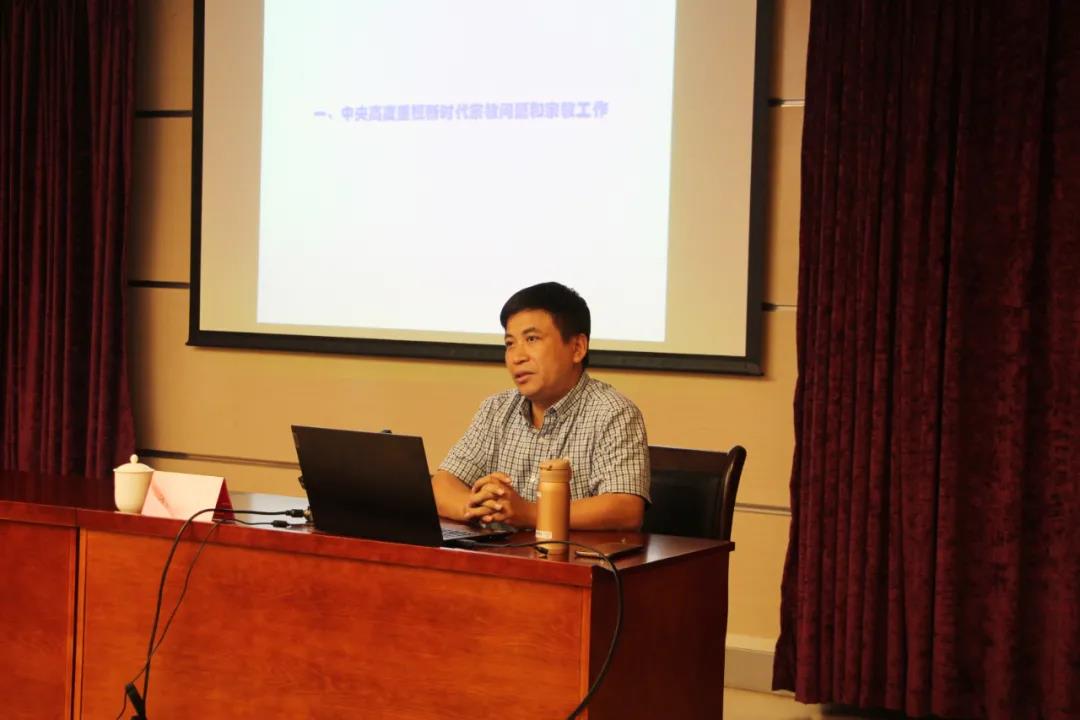 学习会上,郭耕作了题为《党的宗教政策概说》的专题讲座。他从增强“四个意识”,做好基层宗教工作、正确认识和把握新时代宗教工作面临的形势和问题、辩证把握宗教工作的“三个根本”、加强和改进党对宗教工作的领导等几个方面,结合实际案例,全面深入地进行阐释。