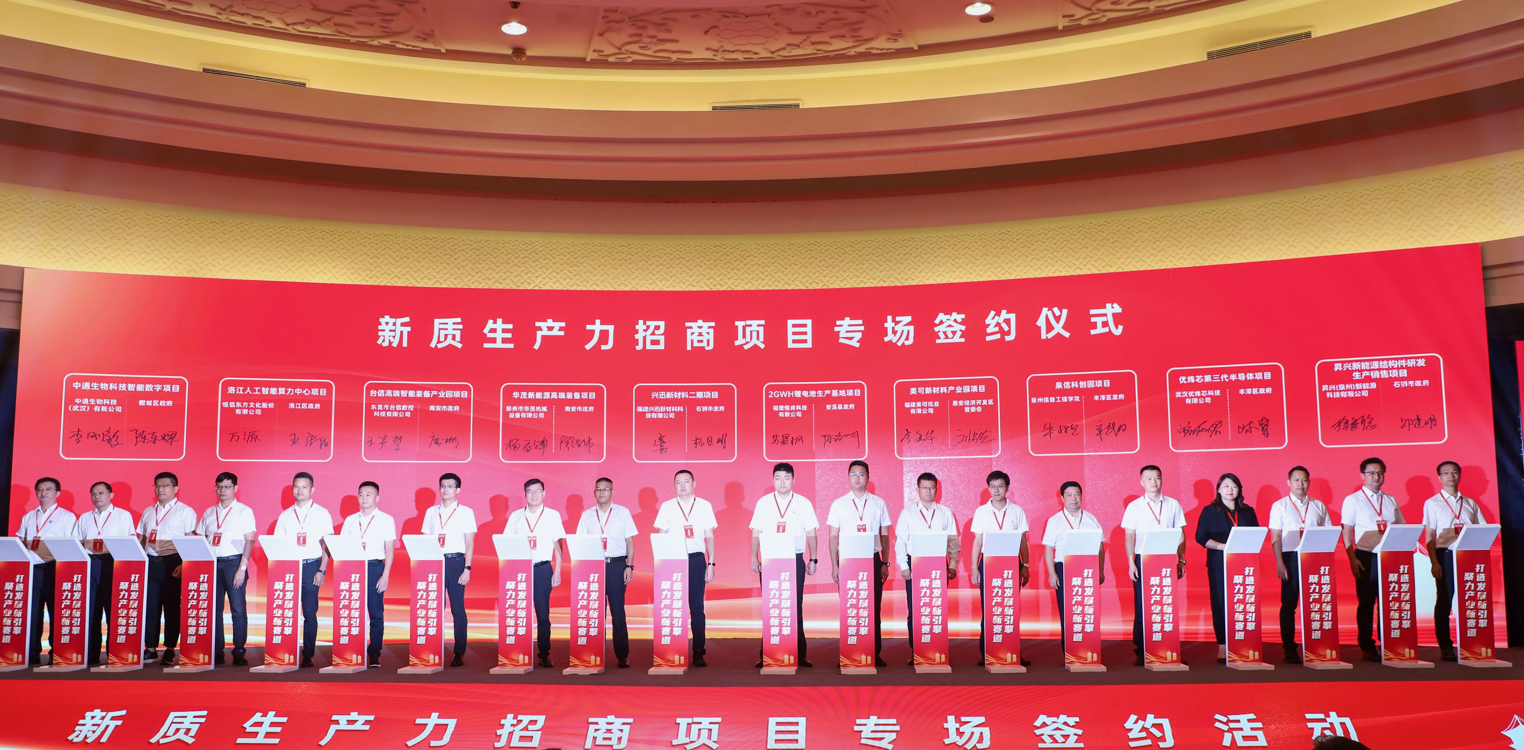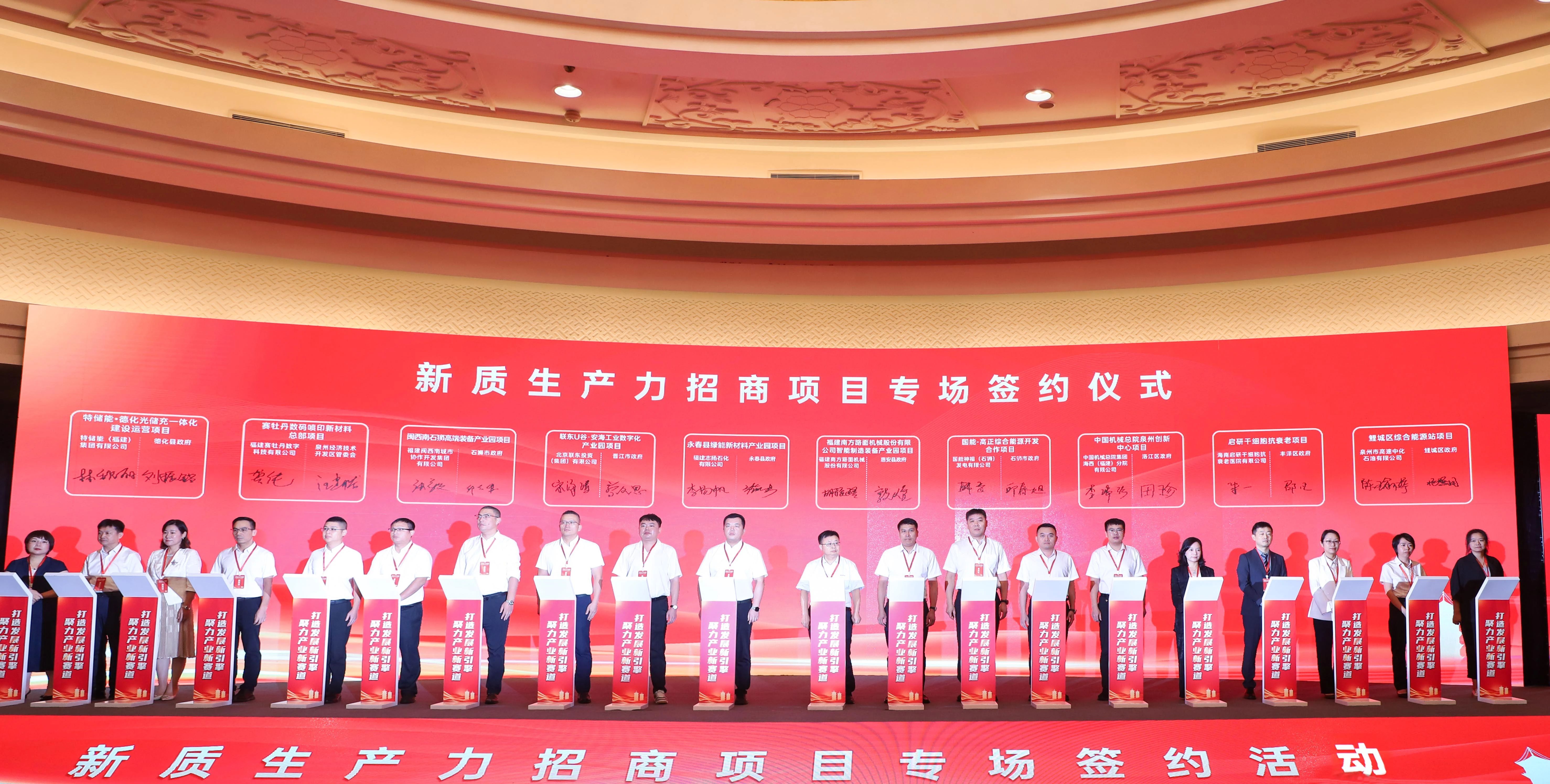 9月24日,泉州市委、市政府在泉州迎宾馆举办“聚力产业新赛道 打造发展新引擎”新质生产力招商项目专场签约活动。