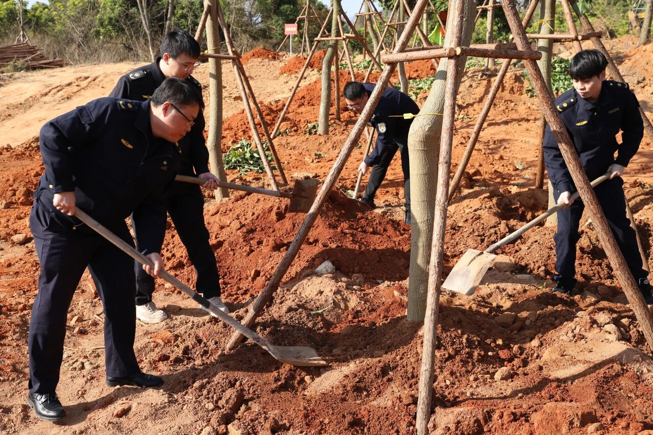 迎着和煦春风,植树现场一派热火朝天的劳动景象。大家挥锹铲土、扶苗填坑,每一道工序都一丝不苟,确保栽种好每一棵新苗。
