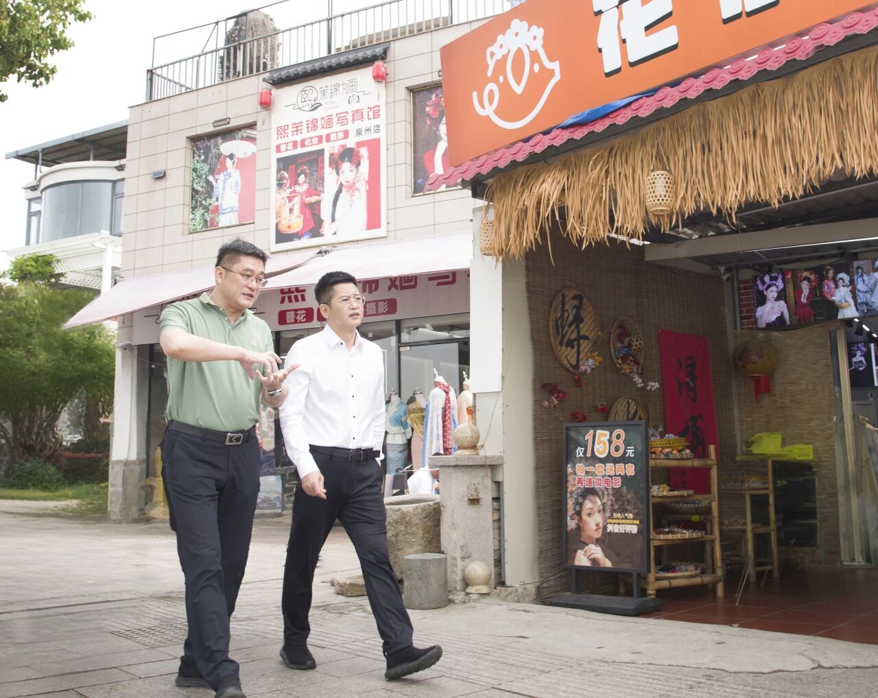 高金全一行先后前往游客服务驿站、蟳埔女习俗非遗馆、蟳埔中路、国潮馆项目等地,实地察看景区现状和项目建设进展,与相关负责人深入交流,详细询问业态招引、运营管理和“五一”期间筹备计划,并就优化游客体验、加快项目建设等提出具体要求。