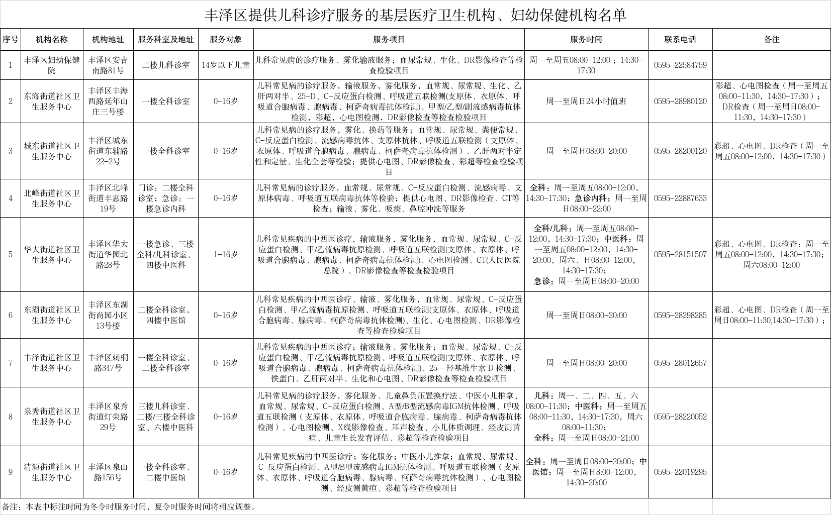 当前已进入秋冬季呼吸道疾病多发期,儿科就医需求增加。为方便儿童就近获得诊疗服务,现汇总丰泽辖区可提供儿科服务的基层医疗机构信息如下: