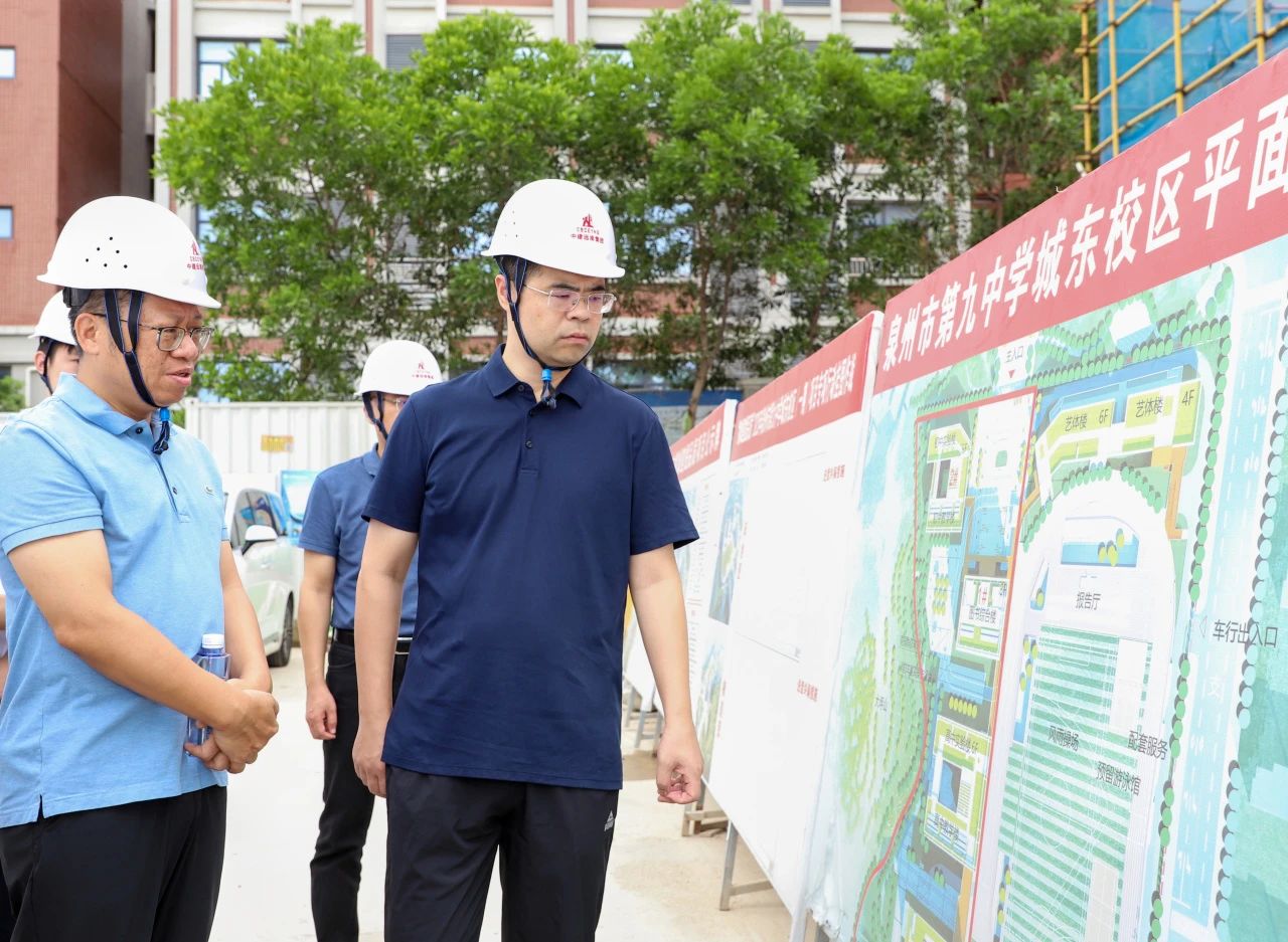 位于城东玉石路的泉州九中(城东校区)项目正加快建设。林清伏来到现场,对照平面图察看和了解项目分期建设进展,协调解决困难问题。