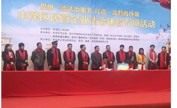 丰泽区已四次蝉联“全国法治宣传教育先进区”称号,有着普法工作全国先进的“金字招牌”。多年来,丰泽区全面推进企业法律顾问和积极开展“法律进企业”制度,在开展企业法律体检方面积累了不少经验。同时,丰泽区将充分利用中心城区律师资源丰富的优势,为民营企业提供一流法治服务,打造一流营商环境。