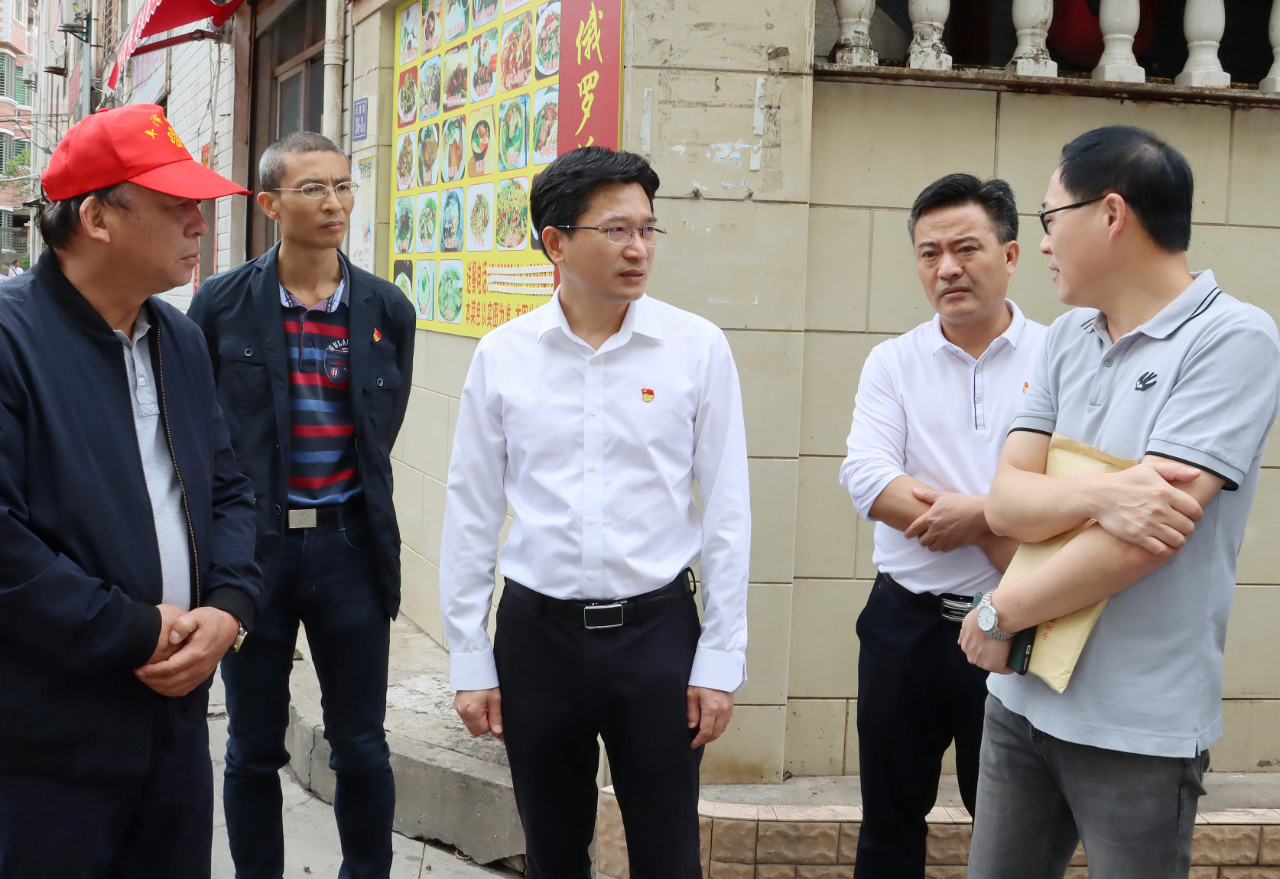 “周边环境卫生整治情况如何?”“便民摊点的经营秩序如何提升?”……徐情根先后前往城东街道庄任社区、东海街道大坪社区、云山社区、滨城社区等地,一边检查农贸市场、背街小巷及店面门前卫生,一边与相关部门、属地街道、社区等负责人深入交谈,了解环境卫生整治情况,就存在的问题现场分析研讨,提出解决思路和整改要求。