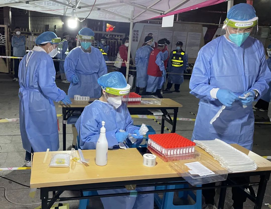 疫情既是一场考验,更是一次淬炼。现场医务人员身穿密不透风的防护服,戴着防护镜和防护手套,穿上这套装备几分钟内便已是汗流浃背,但他们仍然保持良好的工作状态,与病毒抢时间,快速为居民进行核酸检测。当中就包括曾因连续高强度工作而累到虚脱的医务人员。“昨天刚上完夜班,今天白天没休息就过来了。”14日凌晨,在东美社区为群众进行核酸采样检测工作的白衣天使出云香因体力不支而晕倒,经救护苏醒后,又返回岗位继续工作。