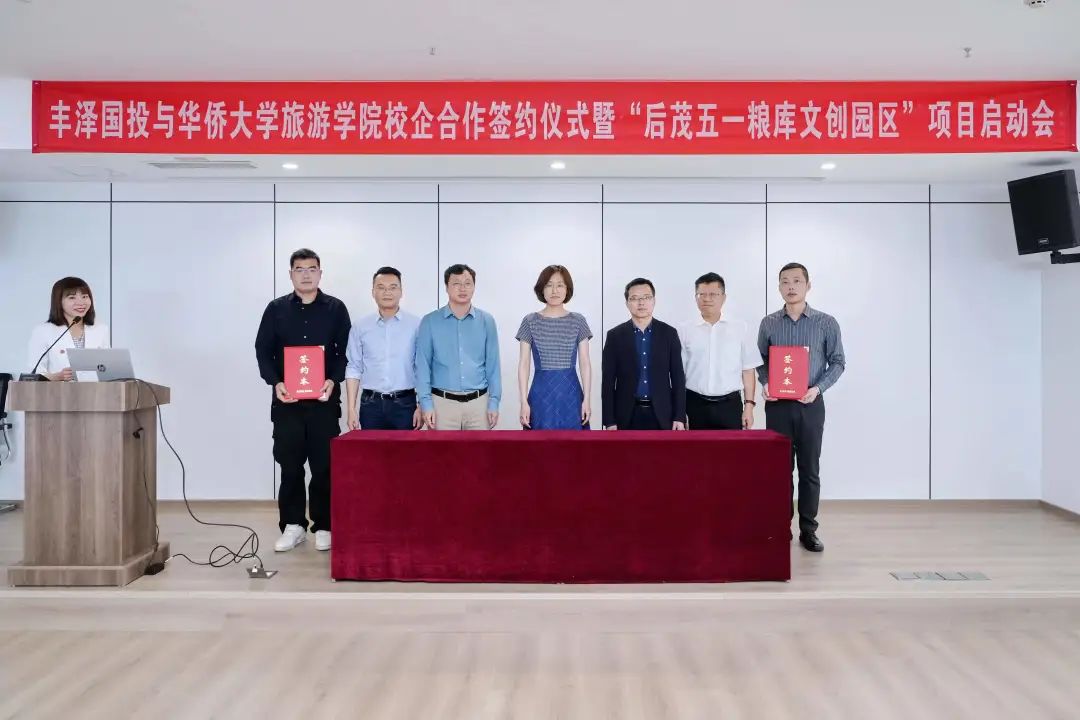 签约仪式上,丰泽国投集团与华侨大学旅游学院签署校企战略合作协议,丰泽国投集团与不凡之地(泉州)文化传播有限公司签署后茂五一粮库项目合作协议。