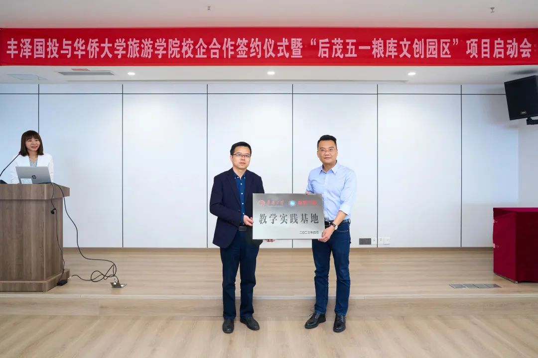 授牌仪式上,华侨大学旅游学院授予丰泽国投集团“华侨大学旅游学院教学实践基地”和“华侨大学旅游学院学生创新创业与社会实践基地”。
