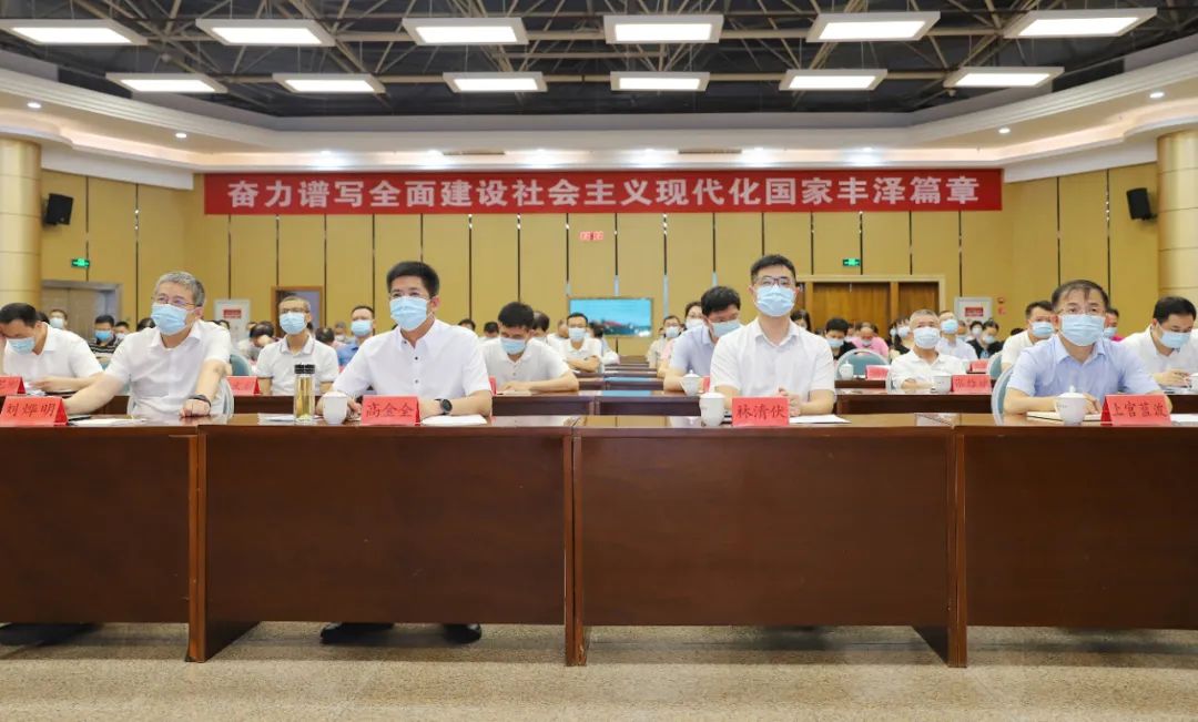 高金全、林清伏、刘烨明、上官蓝波等区四套班子领导,区人武部部长、法院院长、检察院检察长,各街道和区直有关单位主要负责同志参加学习会;区委常委、政法委书记李瑜彬主持学习会。