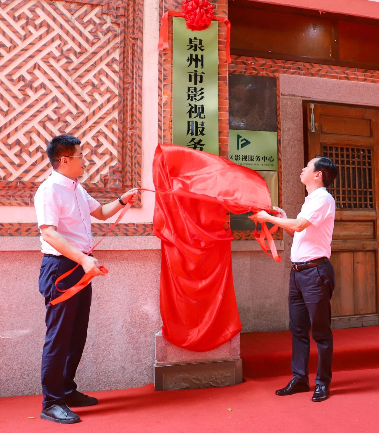 泉州市委常委、宣传部部长、统战部部长刘林霜,丰泽区委书记高金全共同为泉州市影视服务中心丰泽分中心揭牌;泉州市委宣传部常务副部长郑国防主持揭牌仪式;丰泽区委副书记陈清拥为首批文化产业重点园区授牌;区委常委、宣传部部长庄泓鸿介绍中心基本情况;区政府副区长叶春泉为获得福建省电视剧网络剧创作生产专项资金和丰泽区促进影视产业发展若干措施奖励资金企业发放资金。泉州市文旅集团副总经理吴进金,泉州市影视工作专班各成员单位分管领导,丰泽区影视工作专班各成员单位主要领导以及丰泽区影视文化企业代表参加。