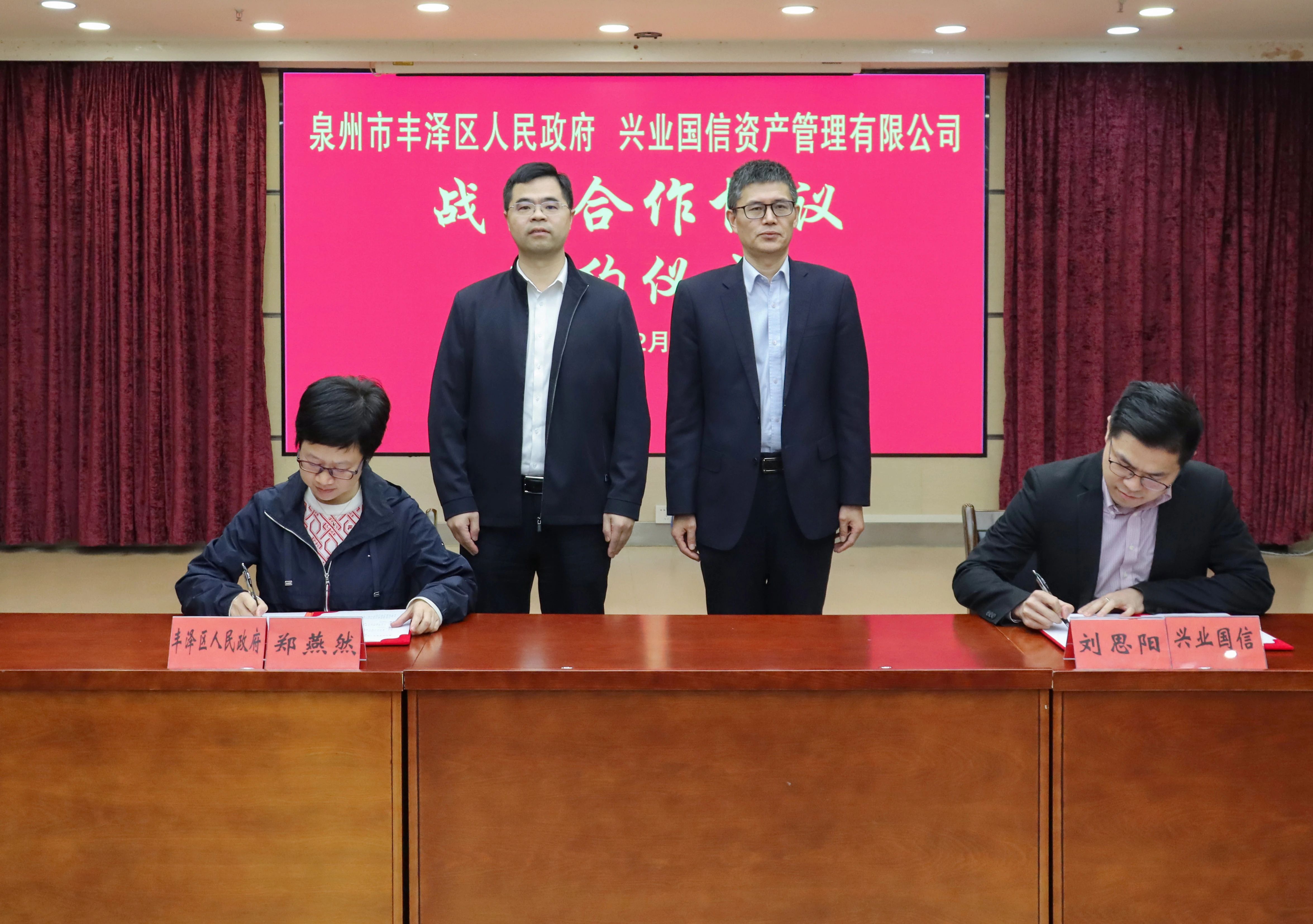 为贯彻落实市委市政府“大拼经济、大抓发展”部署要求,深化“抓开放招商促项目落地”专项行动,2月28日下午,丰泽区人民政府和兴业国信资产管理有限公司举行战略合作签约仪式。