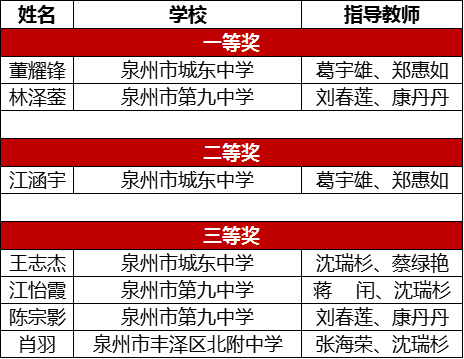 丰泽3所中学、7位同学获奖