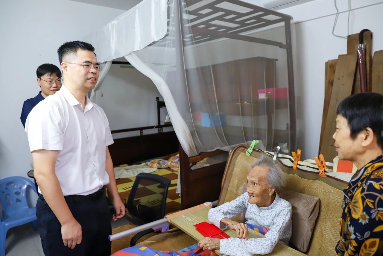 在临海街道法石社区,区政府区长林清伏与百岁老人何治及其家人亲切交谈,仔细了解老人身体健康、饮食起居及家庭照护等情况,希望老人保重身体,并嘱咐其家人天气转凉,要悉心照顾好老人日常生活,让老人安享幸福晚年。