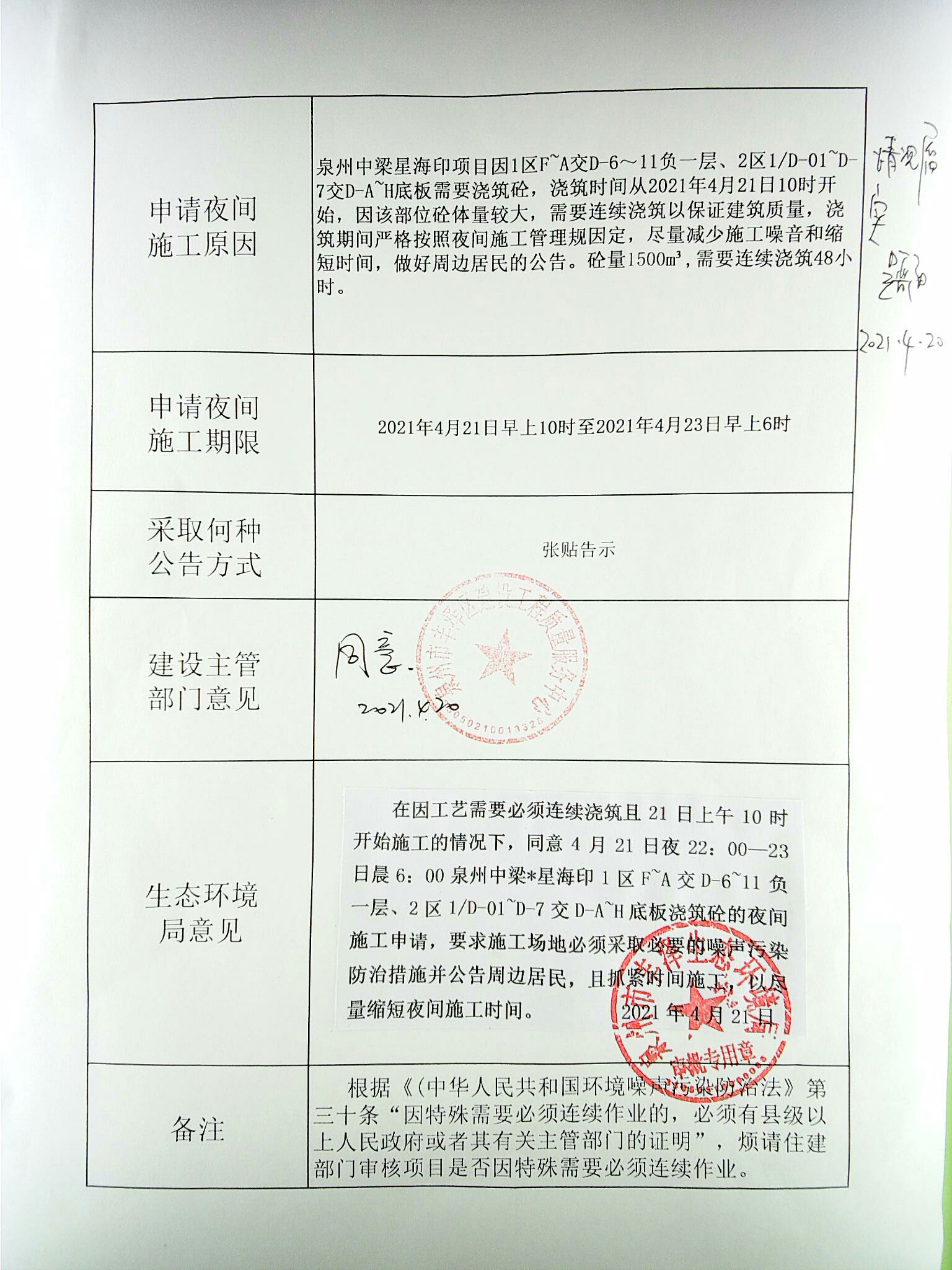 在建工地名称:泉州中梁*星海印
